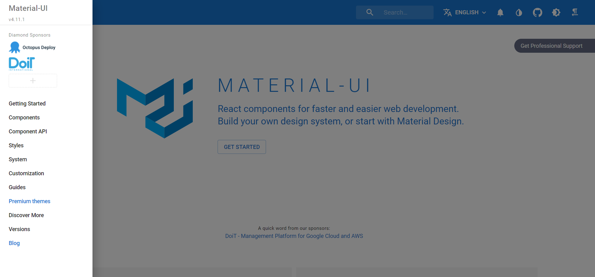 정말 중요한 정보들은 사이드바에서 Getting Started와 Components 메뉴에 전부 몰려 있습니다. 나머지는 내부 시스템 설명이나 컴포넌트 스타일을 변경하고 커스트마이징 하는 방법들이 적혀있습니다. 내용이 생각보다 많고 어려우니 일단 구축되어 있는 컴포넌트를 잘 사용하고 활용할 수 있는데 초점을 맞추는 것을 추천드립니다.