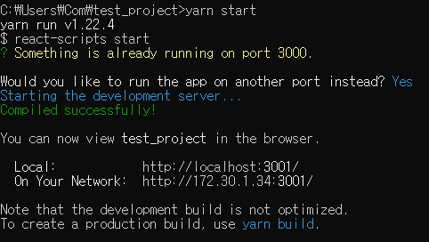 기본 포트는 3000번이지만 사용중일 경우 다른 포트 번호도 기동 가능합니다.