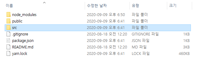 본인이 생성한 폴더로 이동해보면 위 화면처럼 구성이 되어있습니다. src폴더가 소스 폴더입니다.